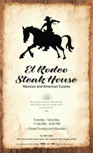 El Rodeo Steak House Back To Klamath Falls OR. Rodeo Steak House Menu.